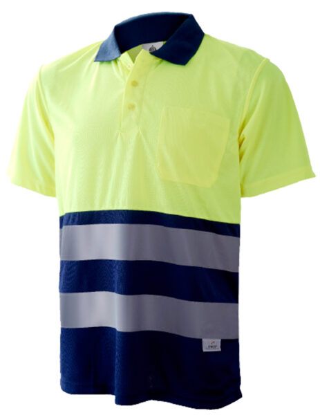 Polo Alta Visibilidad Coolmax Transpirable M/Corta 1 Bolsillo Amarillo/Azul Marino 1201 Tallas