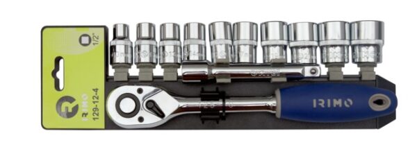 Juego Llave Vaso Carraca 1/2″ Regleta De 12 Vasos 8 A 24 + Carraca Irimo 129-12-4