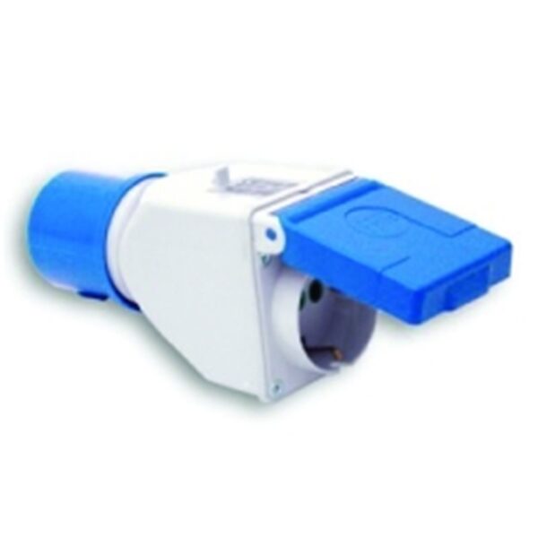 Adaptador Cetac 220v Clavija Macho Azul 2p+Tt A Schuko Hembra Ip 44