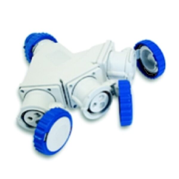 Adaptador Cetac 220v Clavija Macho Azul 3p+Tt A 3 Bases Cetac 2p+Tt » Y » 16a Ip67