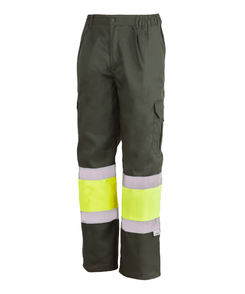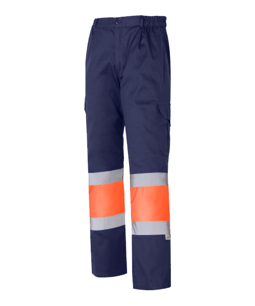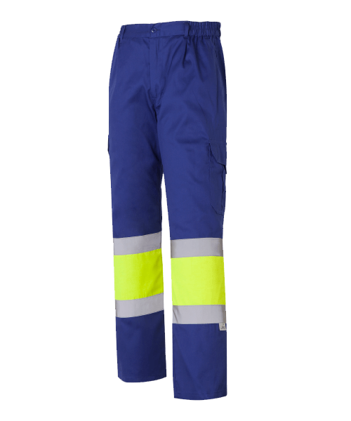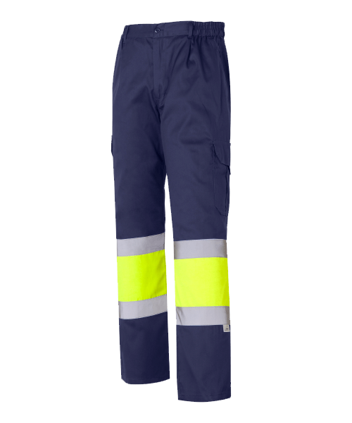 Pantalón Alta Visibilidad Bicolor Amarillo Fluor-Marino Multibolsillos 35%+65% 1061