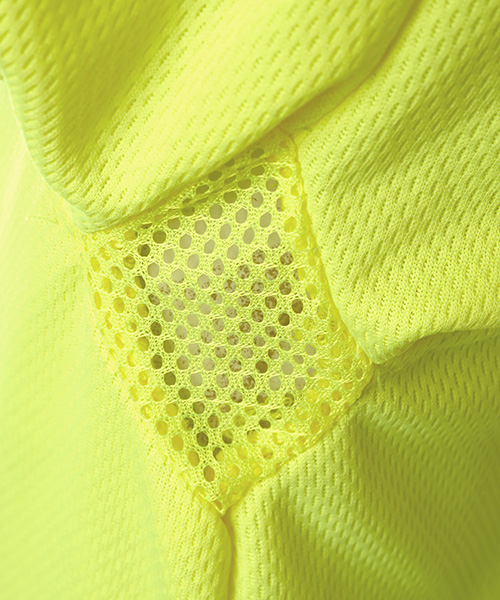 Un bolsillo en pecho con cierre de velcro, tejido de rejilla en axilas para mejorar la transpirabilidad , tejido transpirable y de secado rápido y 2 bandas reflectantes de 6,5 cm de ancho.