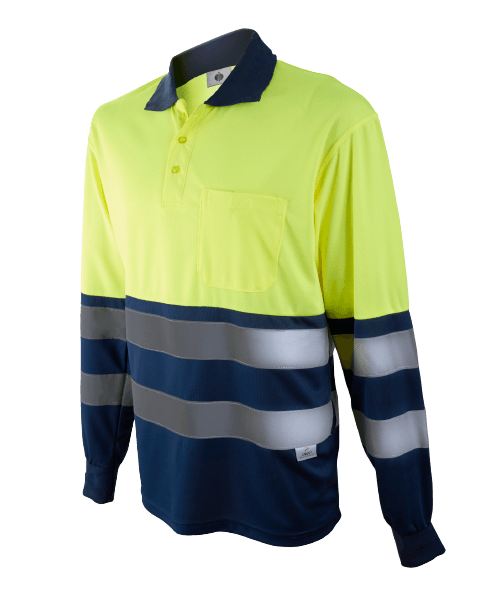 Polo Alta Visibilidad Coolmax Transpirable M/Larga 1 Bolsillo Amarillo/Azul Marino 1095